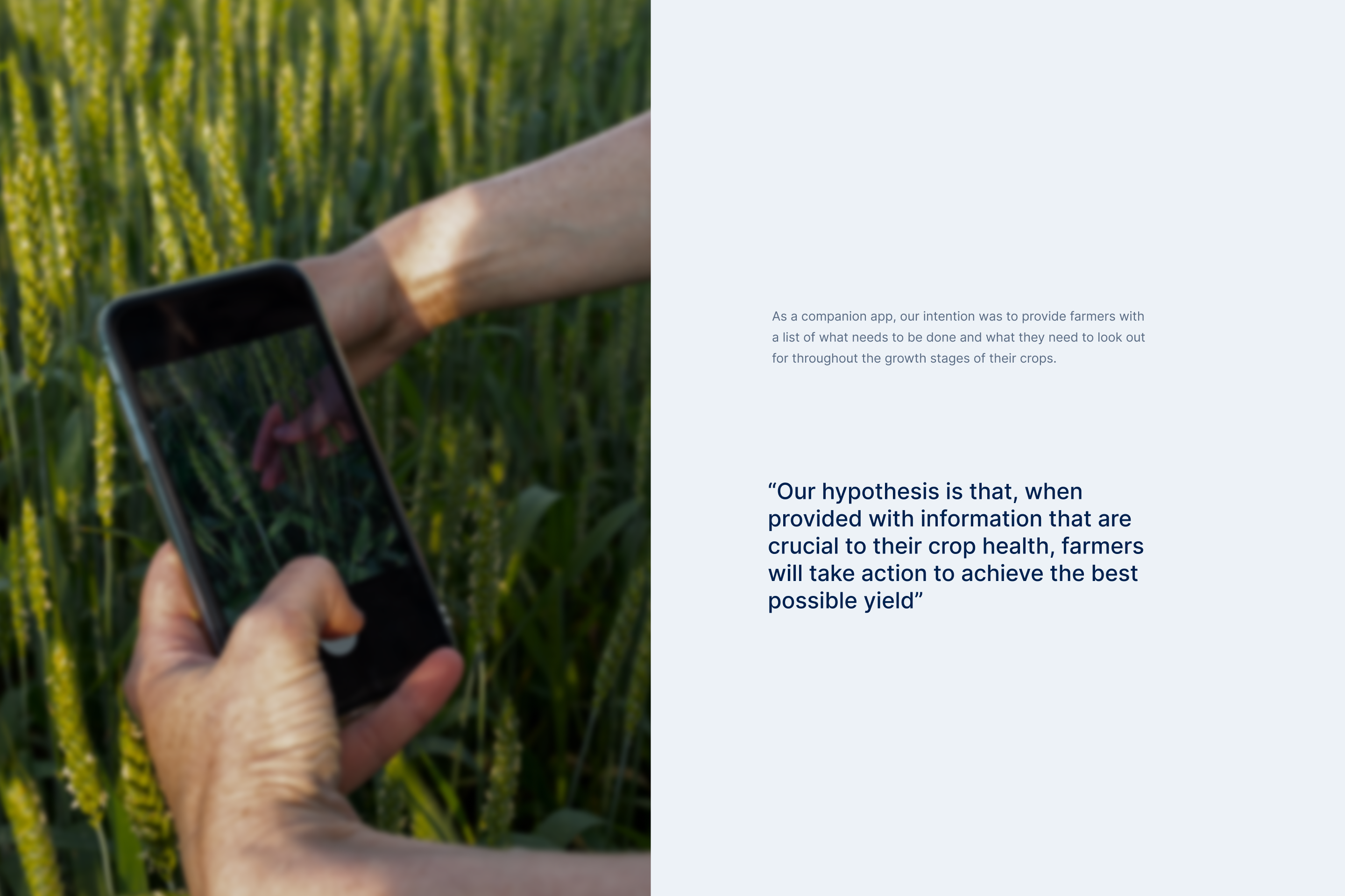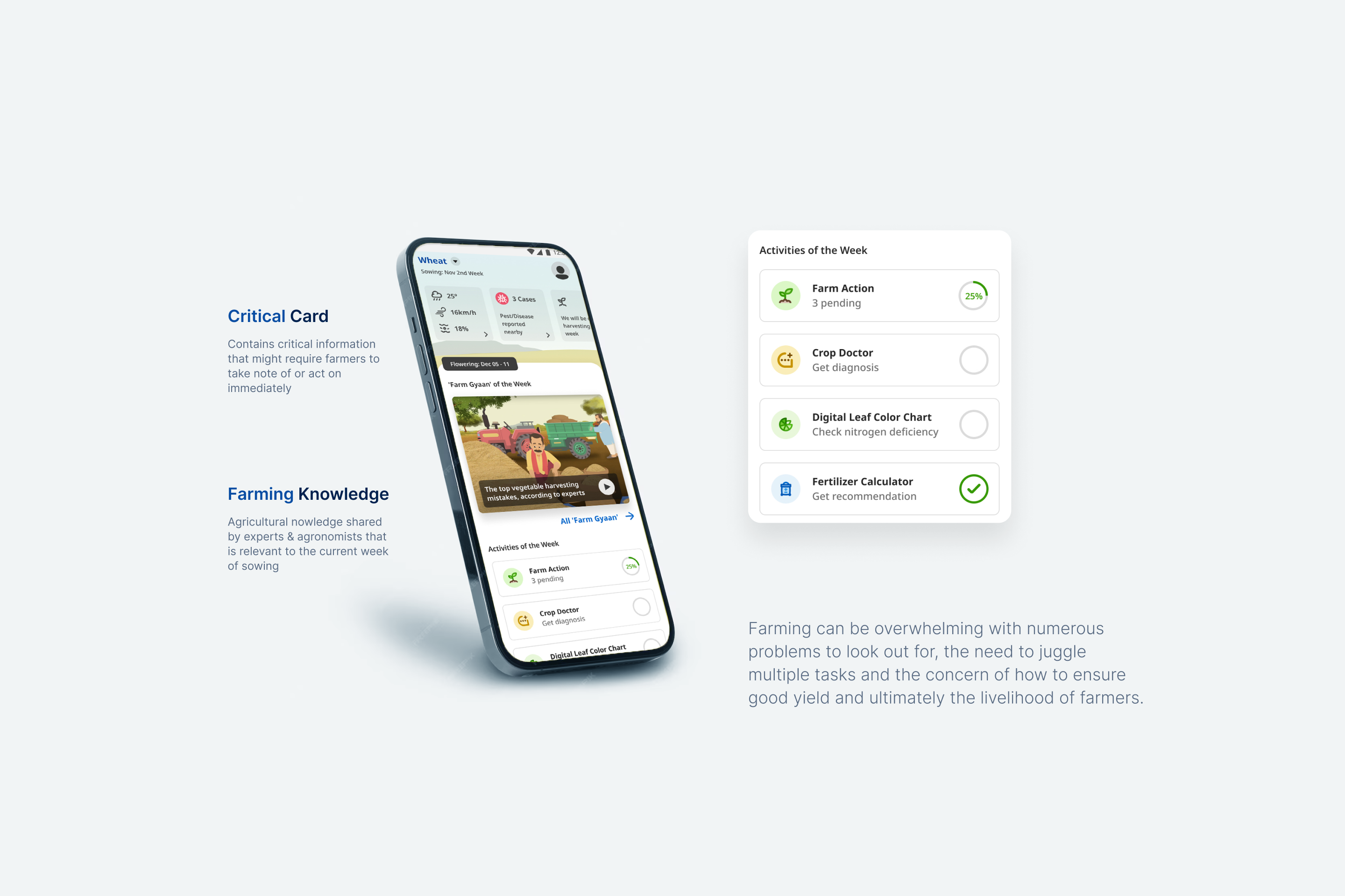 The app is built around the idea of farming companion so the holistic approach is to create a connection between farming tools and farming activities.