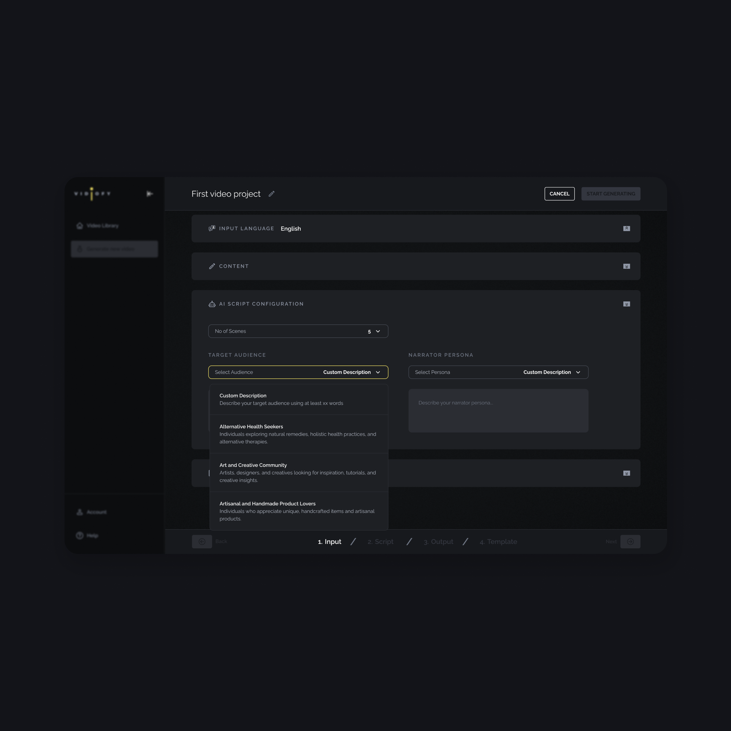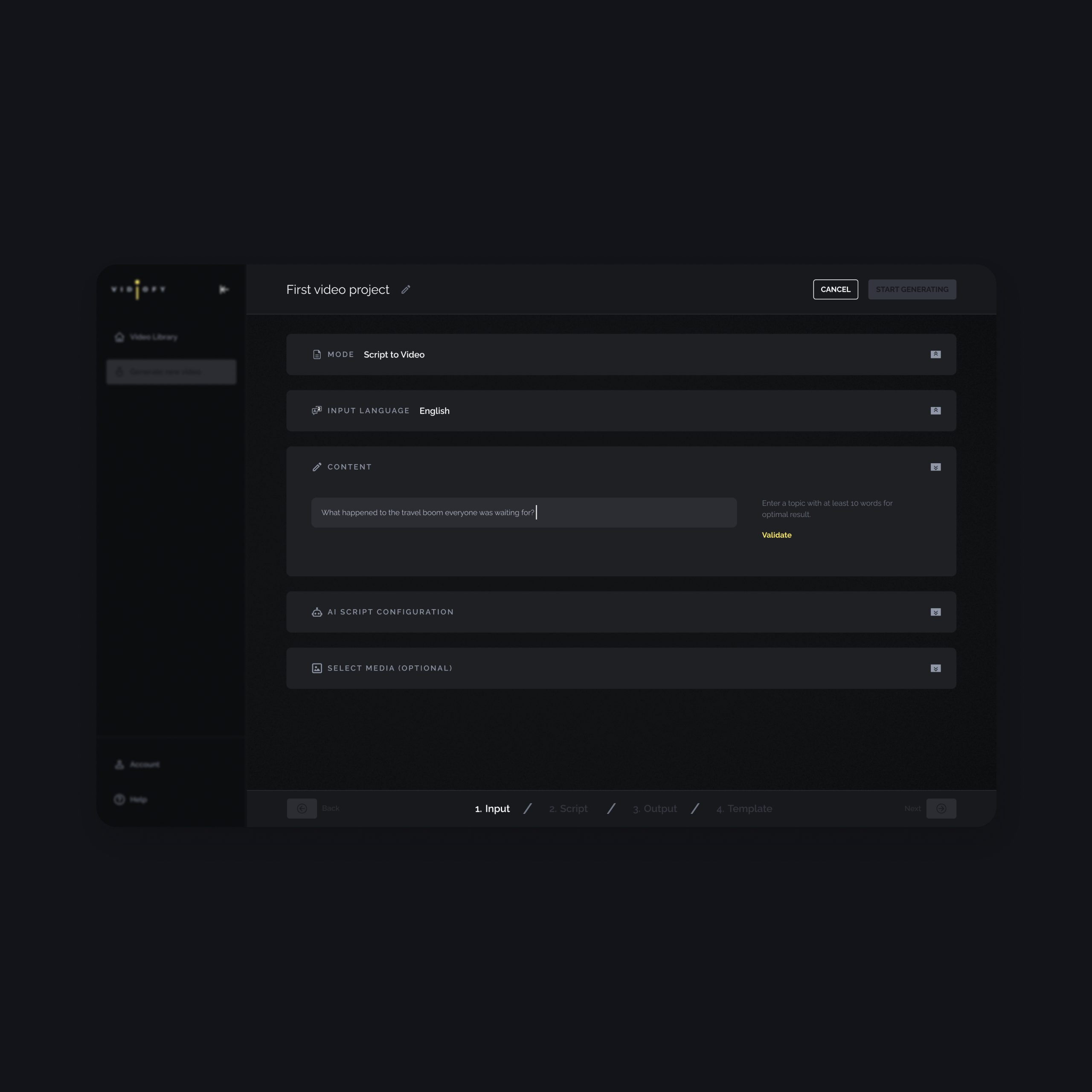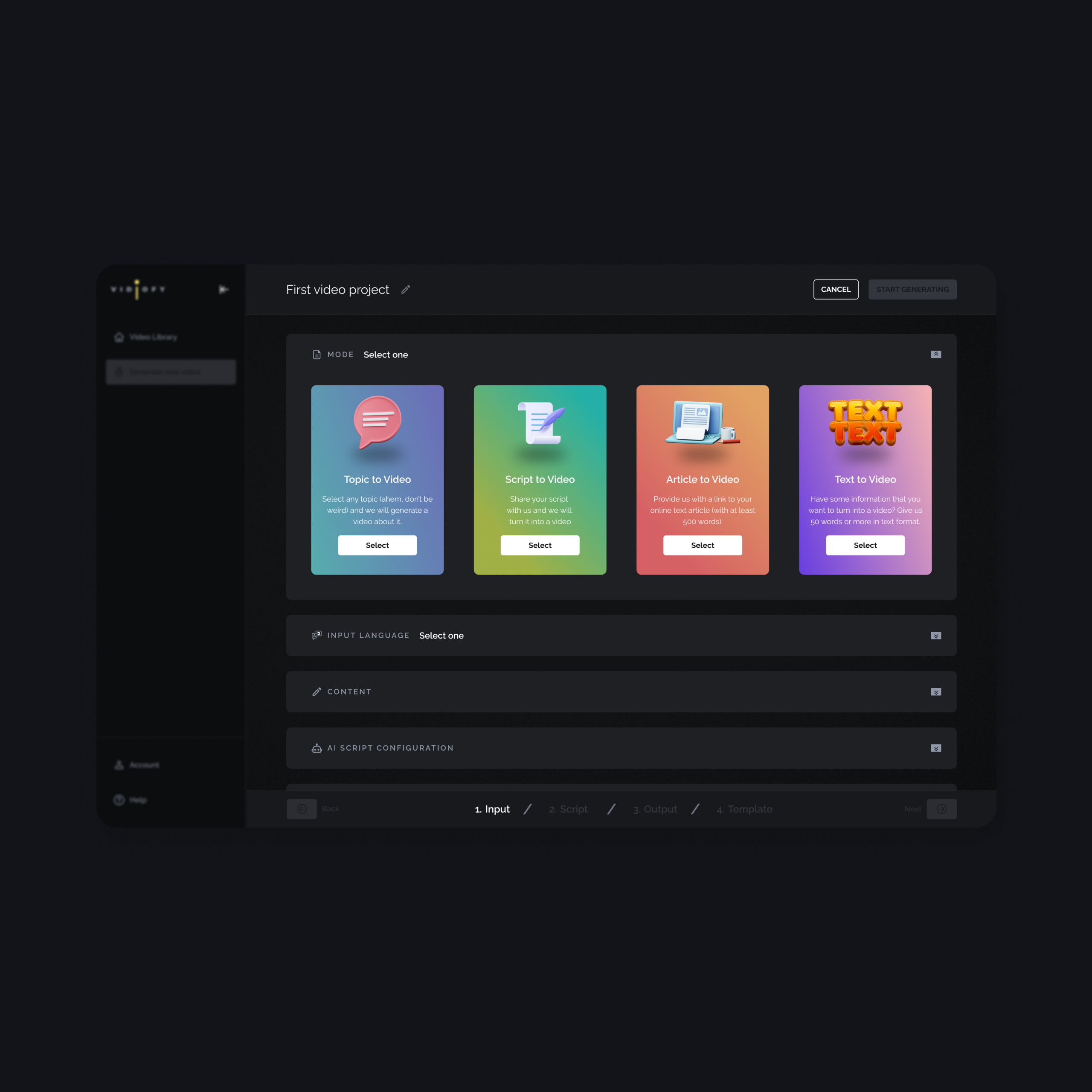 AI-powered video creation requires some input from users before generating necessary data and content for video generation. Users are required to provide a set of input (which can get quite lenghthy and confusing) and necessary configuration to guide AI towards a relevant output.